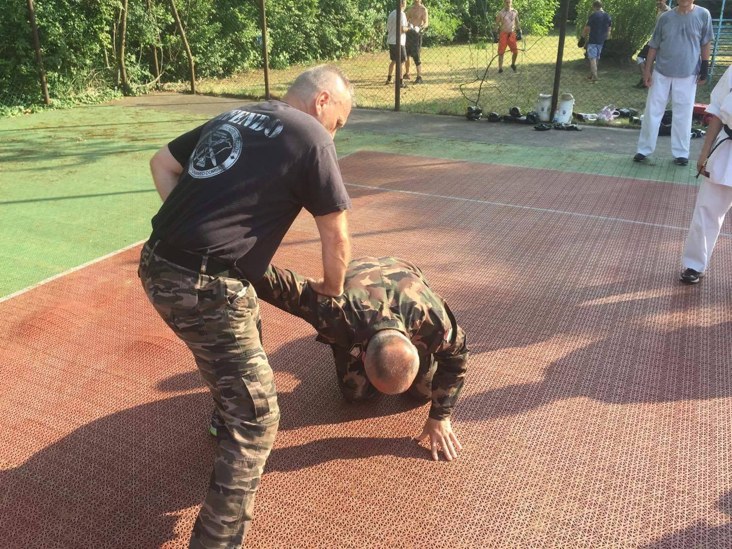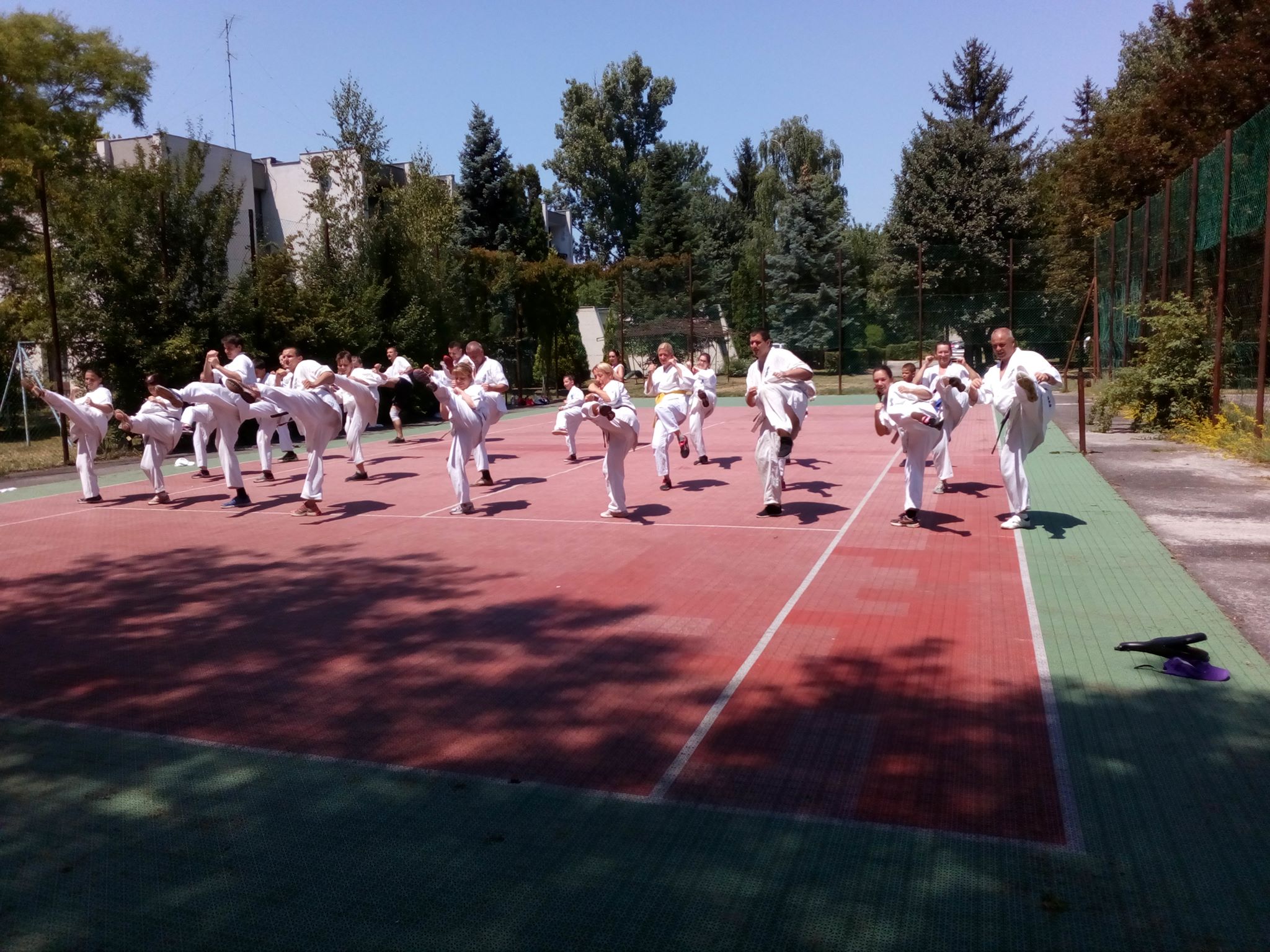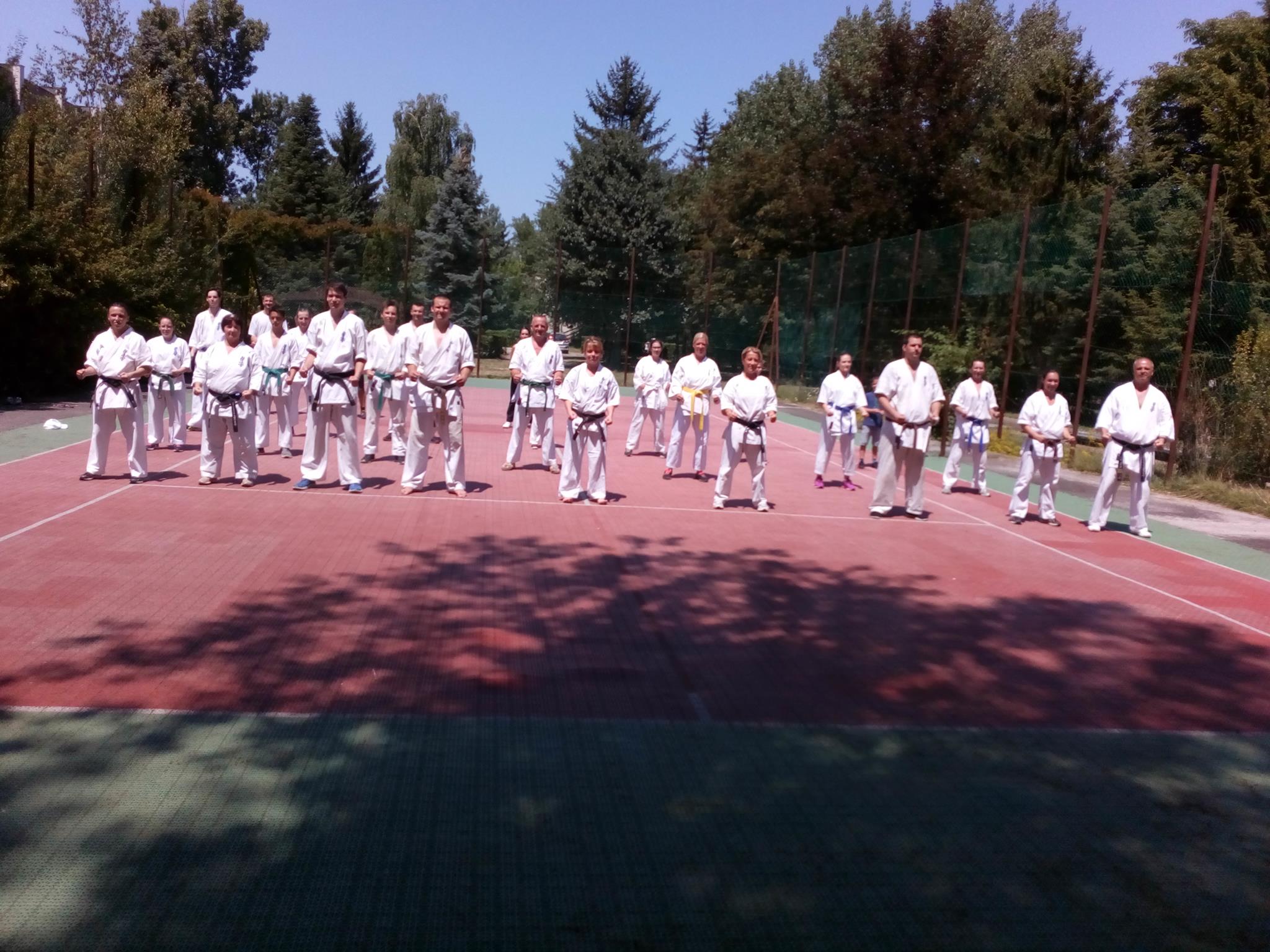 Nos, mint Zsögön Miki által küldött "életképek"-ből látszik, a táborunk lezajlott. Az időjárás több, mint kegyes volt, igazi tomboló nyárban edzhettünk. Sajnos pont a vizi edzést mosta el zivatar front. Voltak edzések hajnalban , délelőtt , délután , fürdések a Balatonban délelőtt , délután , este, buli éjszakába nyúlóan , színesítésként és a szakmai látókör szélesítésére pedig ismerkedés a kés és pisztoly elleni védekezés alapjaival, egy kis kick-box, egy kis krav-maga Shihanunk, Máté Óvári mester és András Müller mester jóvoltából. Shihanunk 60. születésnapját (július 6.) óriási tortázással ünnepeltük! Tartalmasan telt a tábor ideje. A karatés résztvevők mellett idén már kesztyűs táborozókat is üdvözölhettünk sorainkban, akik rövidebb időre a kyokushin edzésekbe is bekapcsolódtak. Külön öröm volt, hogy ismét sok családtag is velünk tartott, így igazi családias légkörben táboroztunk! Végül elérkezett a tábor csúcspontja, az övvizsga, melyen 13 vizsgázó állt fel a megmérettetésre, és a hagyományosnál kissé rövidebb, de nagyon pörgős, hajtós erőnléti-technikai vizsga és a kemény küzdelmek eredményeképpen 2017. június 24-től 10. kyu övfokozatot visel: Müller Sára és Zsögön Andor; 8. kyu övfokozatot és kék övet visel: Müller Máté, András Müller, Tóth László és Csilla Péliné Németh; 7. kyu övfokozatot visel: Andrea Kovács és Krepcsák Ádám; 6. kyu övfokozatot és sárga övet visel: Lucus Peli; 5. kyu övfokozatot visel: Katalin Bódor; 3. kyu övfokozatot visel: Benedek Lovas; 2. kyu övfokozatot és barna övet visel: Bettina Gróz és Gergely Blazsan. Gratulálunk a vizsgázóknak az új övfokozatokhoz! Az élet megy tovább, következő állomás, amire készülünk, a szentesi központi tábor, ahol remélhetőleg újabb sikeres vizsgáknak örülhetünk majd. Köszönet minden táborozónak, karatékának és kesztyűsnek, családtagoknak a jó hangulatért, és kellemes táborért. Nyáron folytatódnak az edzések, várunk mindenkit a szokott időpontokban! Osu! Arigato! Timi sensi